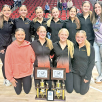 State dance awards: Pictured (front row, l-r) are: Naunika Crum, Alyssa Biede, Reese Hawthorne, and Mylee Dvorak; back row: Bryli Blunk, Emlynn Winkel, Laney Georg, Alyvia Allerdings, Marleigh Banks, Savannah Lesher, and Coach Witzke. Photo submitted