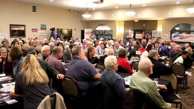 Standing room only: An estimated crowd of 200 people gathered at the Cobblestone Inn event center, to hear from candidates for Iowa Governor and Iowa District 4 Representative, at the GOP Forum in Holstein. Photo by Brent Harm