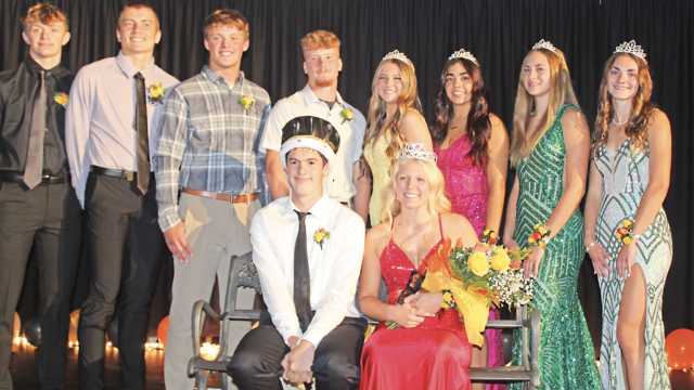Ridge View homecoming court: The 2025 Ridge View homecoming court includes, back from left: Zach Kolpin, Carter Todd, Blake Myrtue, Lucas Heilman, Zoey Aschinger, Leslie Avina, Alyssa Biede and Addy Tesch. In front, 2025 homecoming king and queen...